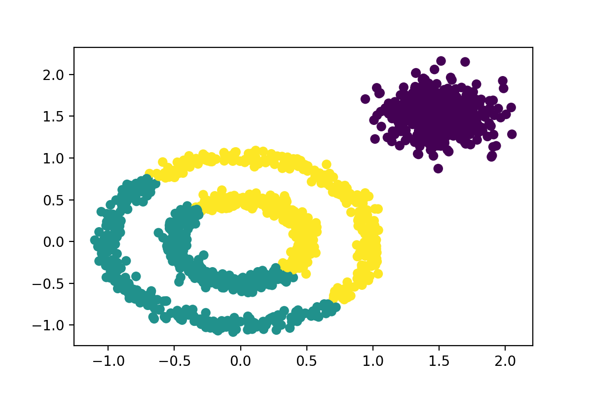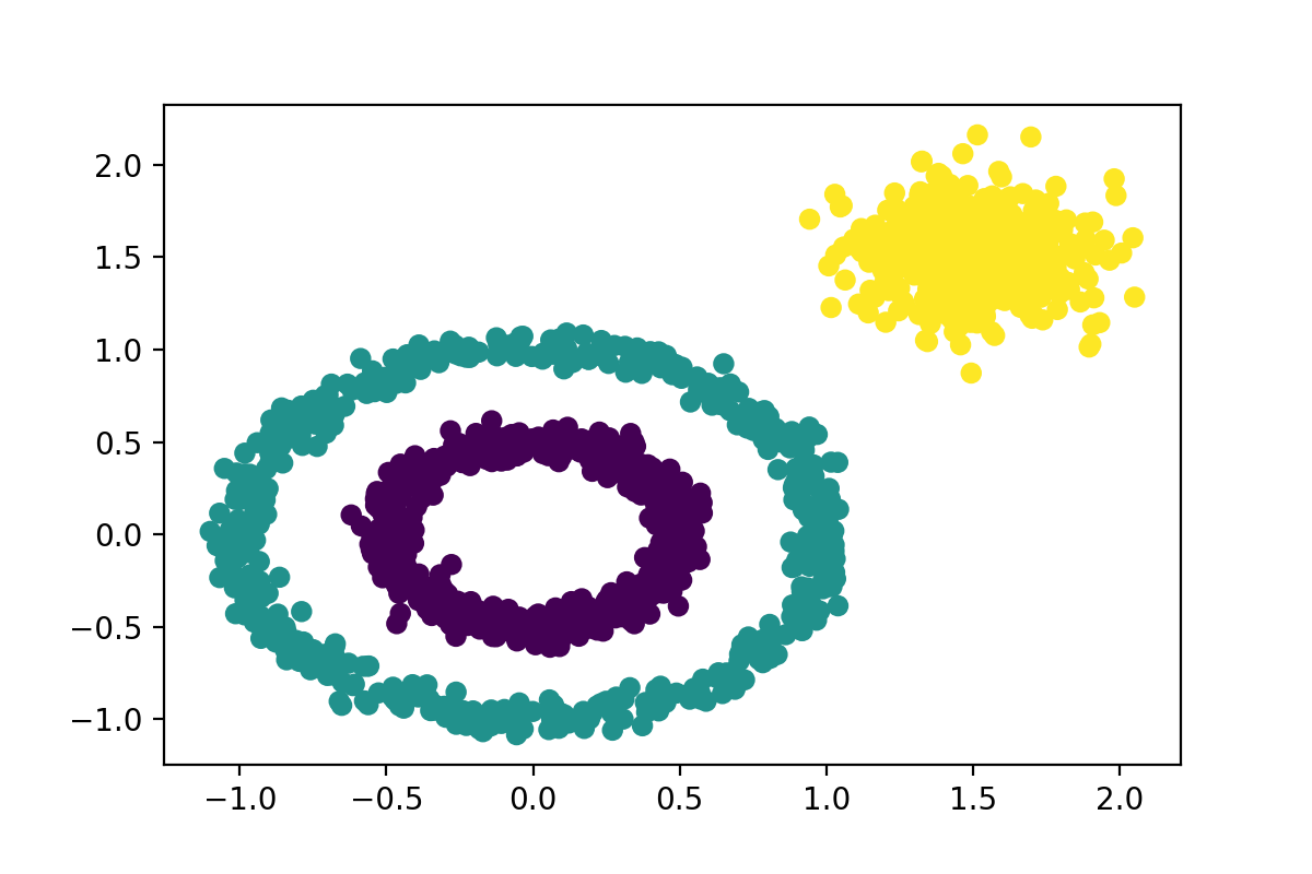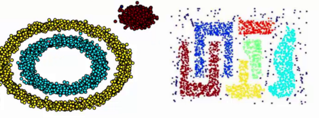 DBSCAN(Density-Based Spatial Clustering of Applications with Noise,具有噪声的基于密度的聚类方法)是一种基于密度的空间聚类算法。 该算法将具有足够密度的区域划分为簇,并在具有噪声的空间数据库中发现任意形状的簇,它将簇定义为密度相连的点的最大集合。