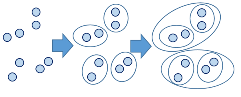 层次聚类(Hierarchical Clustering)是聚类算法的一种,通过计算不同类别数据点间的相似度来创建一棵有层次的嵌套聚类树。在聚类树中,不同类别的原始数据点是树的最低层,树的顶层是一个聚类的根节点。创建聚类树有自下而上合并和自上而下分裂两种方法。